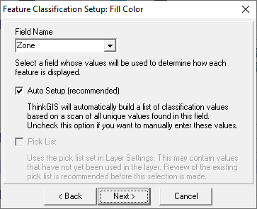 Show Legend On Screen: Check this box to see a legend on the main Think GIS display showing these classification values. This option is completely independent of the legend displayed on printouts.