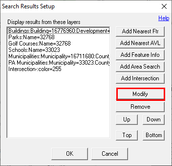To change the parameters of an existing configuration, select the appropriate setup from the view window and click the Modify button. This will initiate the setup wizard for that configuration.