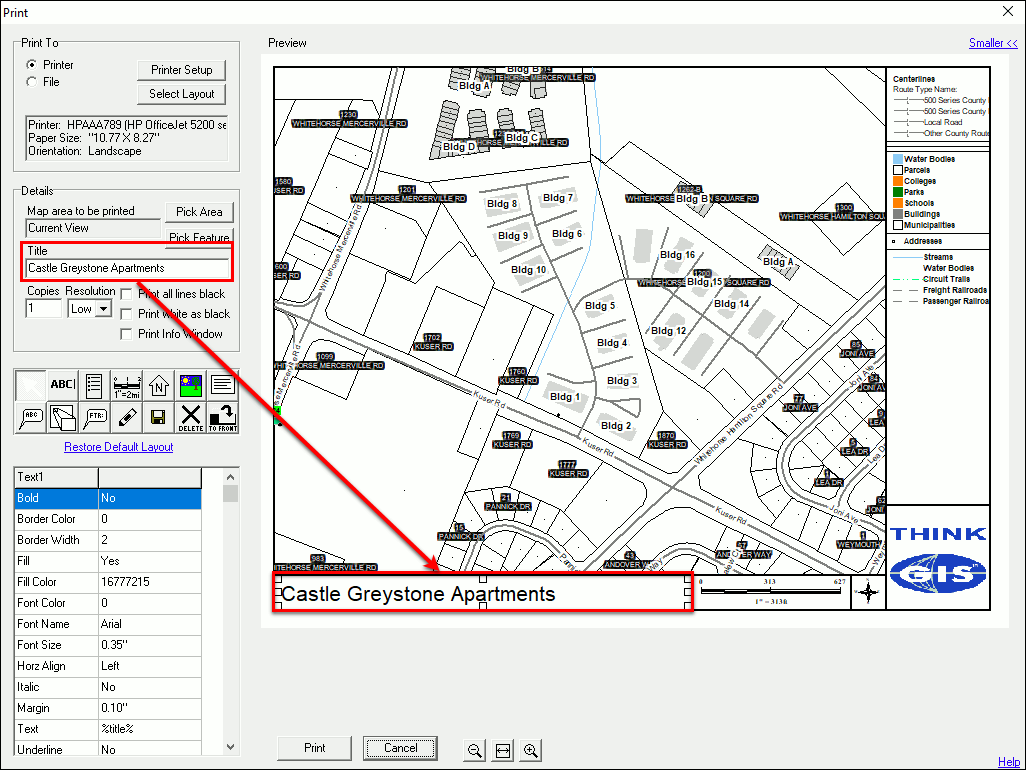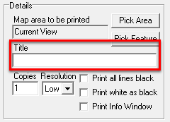 Any text typed here will be inserted into the Title Bar in the print graphic.