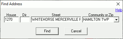 Note: The new Search Box located on the main Think GIS toolbar is the easiest place for locating addresses and therefore this old Find Address dialog is somewhat obsolete.