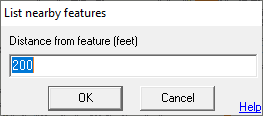 1) From the Lookup menu select List Features Within an Area - Specify a Distance from a Feature.