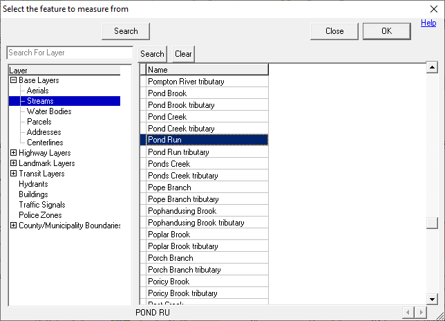 2) Select the base Feature to measure from. This can be any Feature on any Layer that is represented on the map as a point, polyline, area, or any other type of entities.