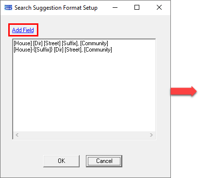 Click here to see a list of fields for this layer. Select one then click OK to insert it into a Search Suggestion format line as described above.