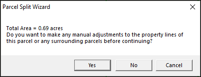 5) If any manual changes are needed to edgematch, or otherwise adjust the final parcel, click Yes and use the Move Tool to make the adjustments; otherwise, click No.