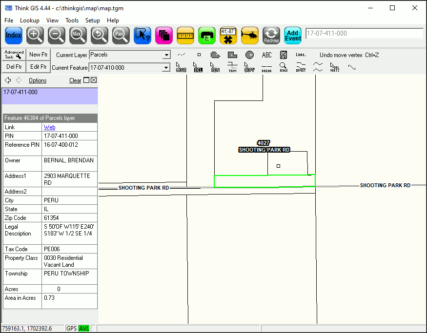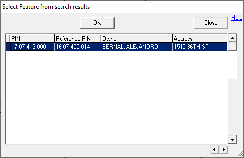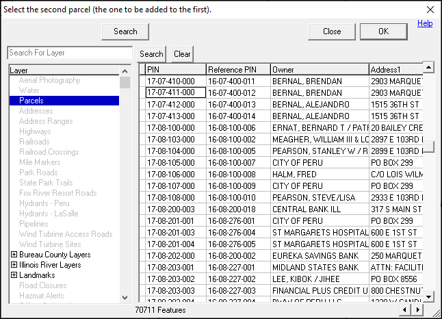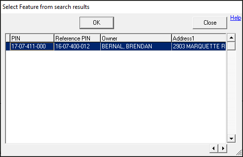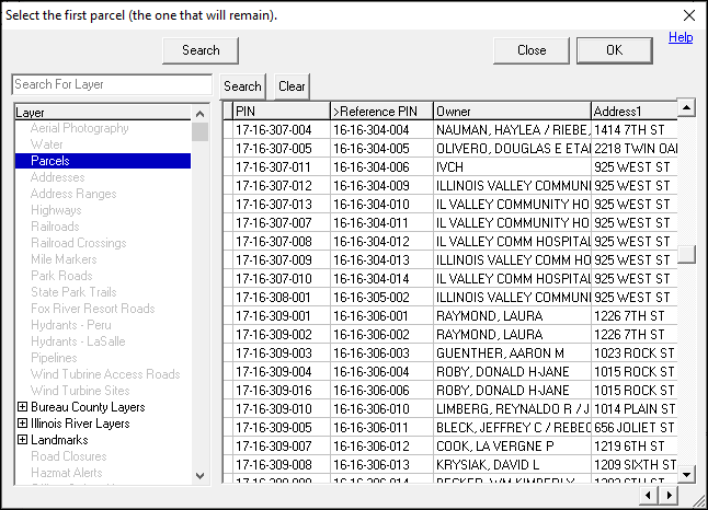 3) Find the second parcel, the one that will be combined into the first parcel, using the Search function.