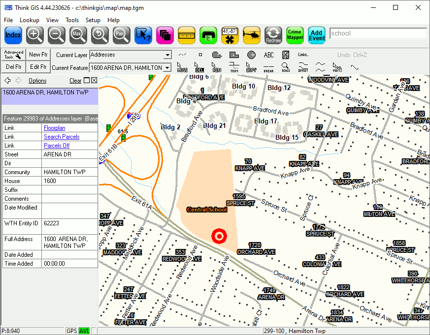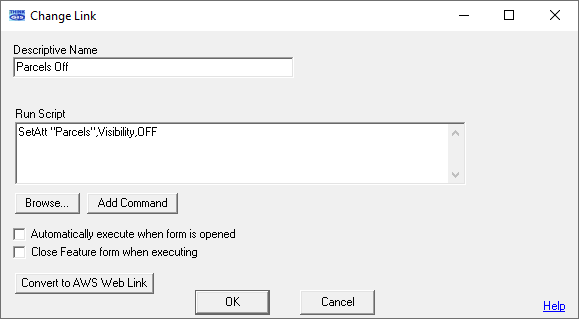 5) The link will display on both the Info Window for the feature and the Feature Form. Clicking on the link will then change the layer to the desired parameters. In the below example, the Parcels layer is turned off.