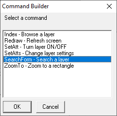 This option from the Add Command list allows users to automatically pull up an Index Search Form for a specified layer.