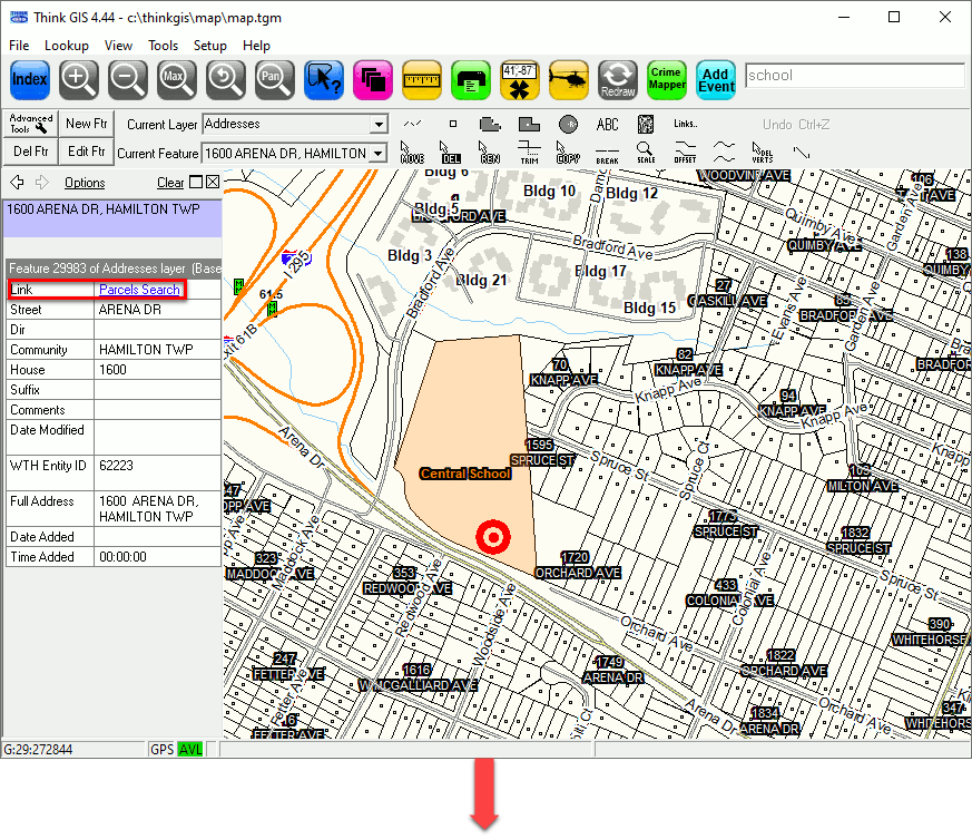 4) The link will display on both the Info Window for the feature and the Feature Form. Clicking on the link will bring up the Index search for the layer selected in step 2.