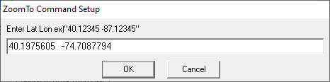 This option from the Add Command > ZoomTo - Zoom to a rectangle list allows users to enter a specific Latitude and Longitude to zoom to in the map.