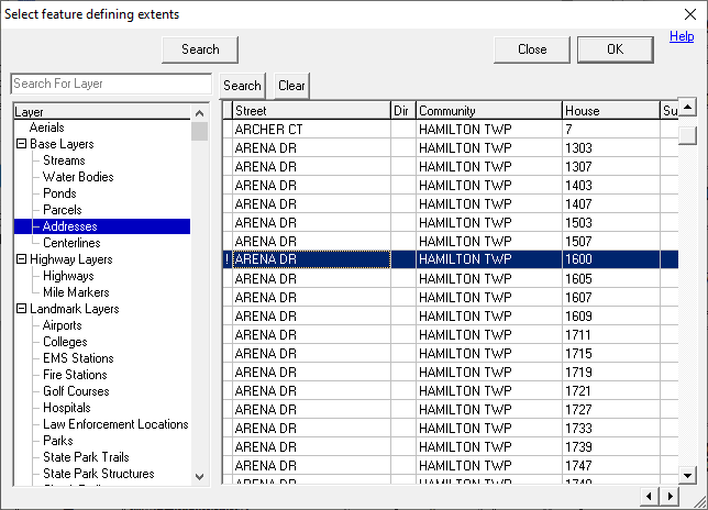 2) This will pull up the select feature form, which behaves like a truncated version of the Index. Once the desired feature is selected, click OK.