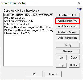 3) Select the Add Nearest AVL button from the list of options on the right.