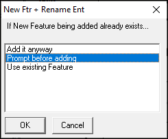 •Prompt before adding= This option will pop up a notice that a feature with the same Feature Name already exists in the layer. (WTH recommends using this option, if unsure.)