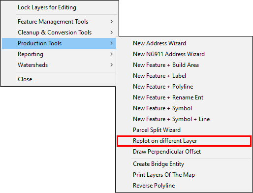 1) Lock the desired layers for editing, zoom to the location of the new structure, and then select this tool from the Production Tools menu.