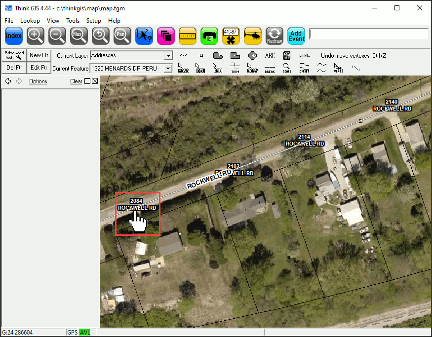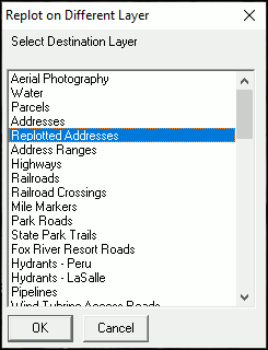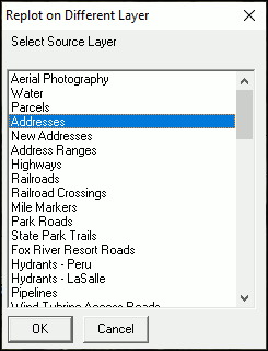 2) If this is the first time running this tool since starting Think GIS, setup configuration is required. Once the tool has been configured, it will retain the settings unless either the user opts to change them or Think GIS is closed. In this example, the tool is being used to move address points that have been plotted to the road centerline to the structure location in the aerials. Select the Source Layer, the layer containing the features to be replotted, and then click OK.