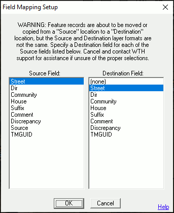 •If Field Mapping is required and a TMGUID field is present in the Source but not the Destination layer, it is recommended that the action is canceled and a GUID field is first added to the Destination layer.