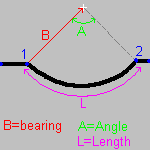1) Enter the bearing of the leading chord as indicated by the red vector in the sample drawing. If the bearing is assumed to be equal to the previous bearing then enter the bearing as a Zero "deflection".