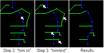3) Next use the "trim/ext" cursor to select a polyline that needs to be shortened or extended to meet the polyline selected in the above step. If shortening a polyline it is important to select the polyline on the end that will be removed.